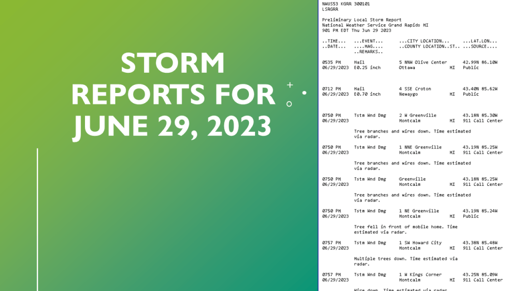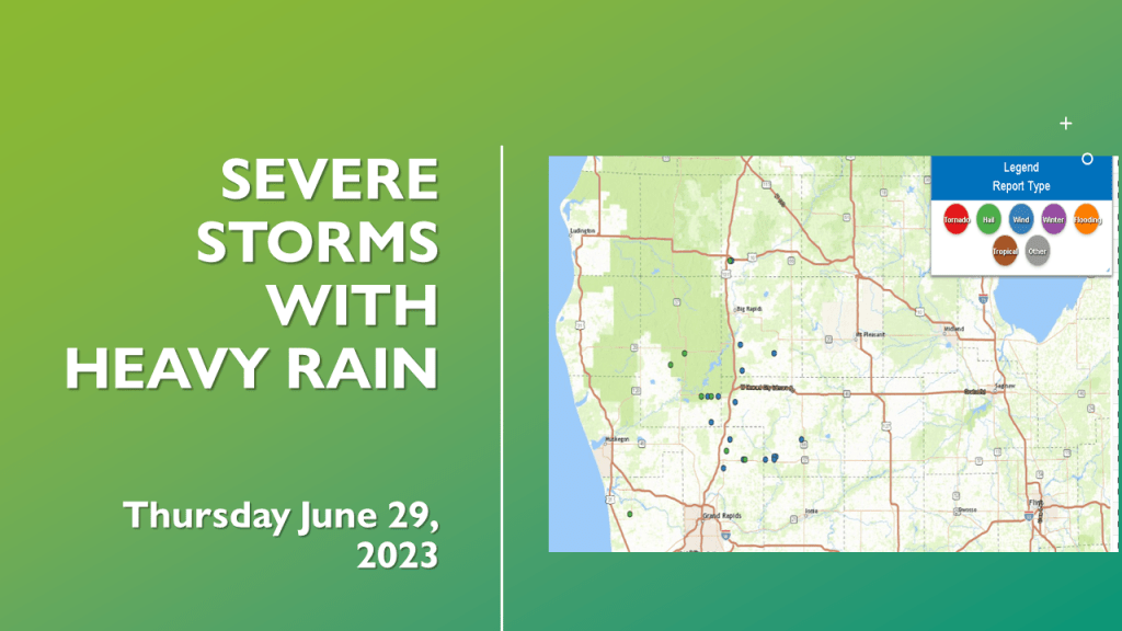 Severe storms during the evening of June 29th 2023 brought down trees and wires. Locally heavy rain causes some roads to be closed for a while.