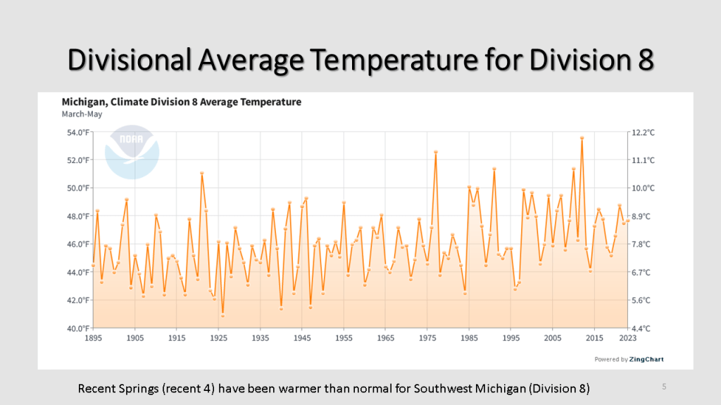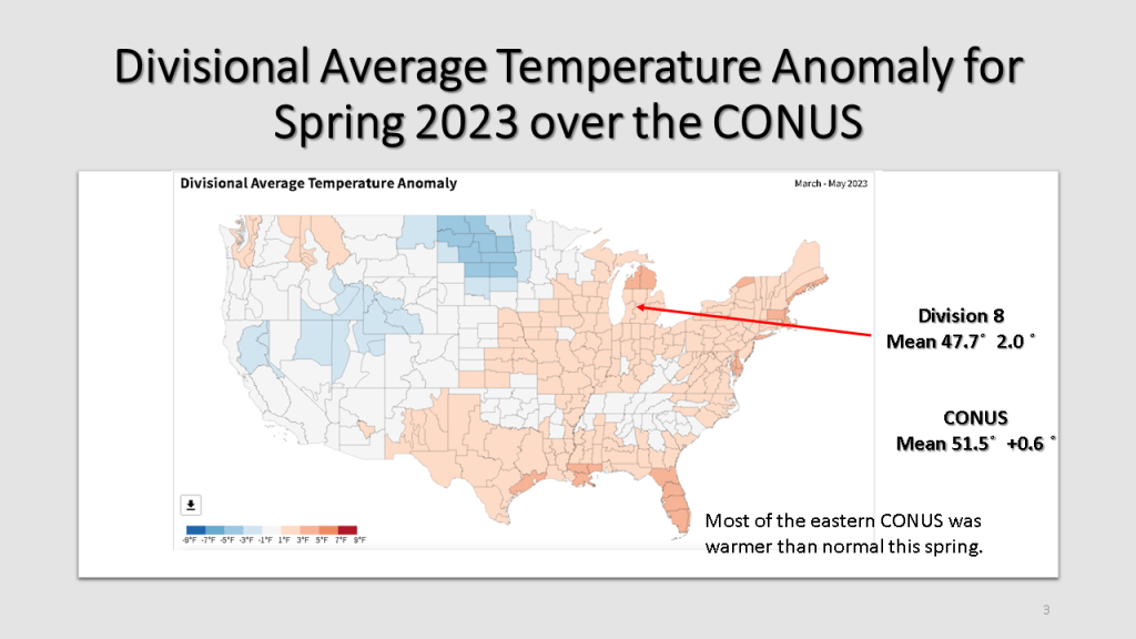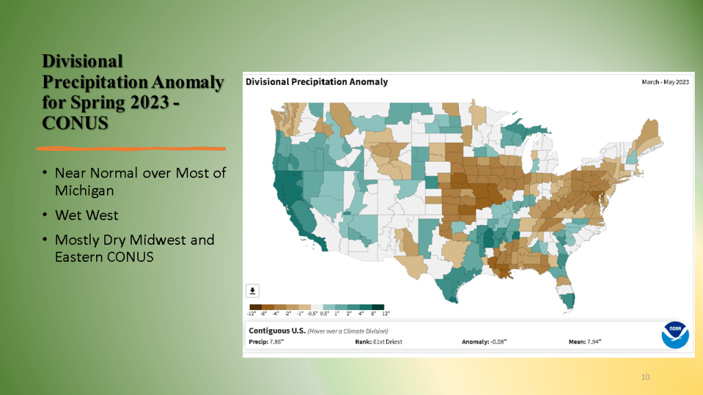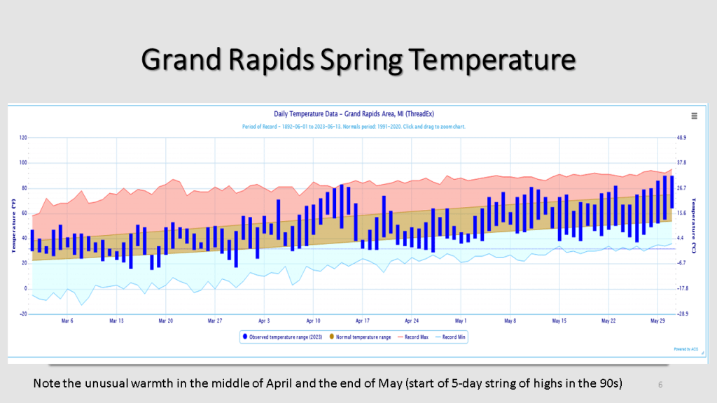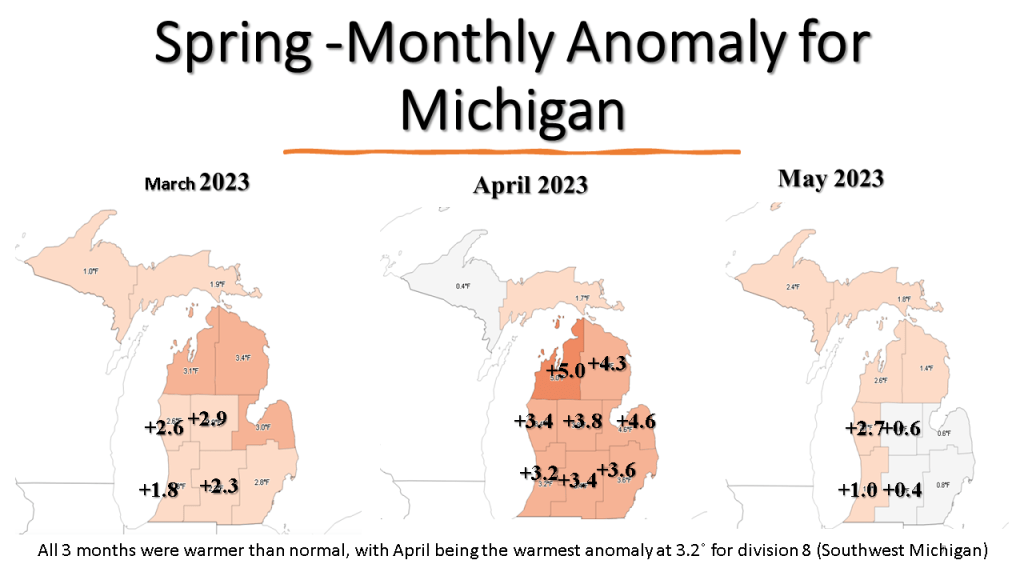 Spring started out in March, warmer than normal, snowy and wet but ended in May still warmer than normal but very dry over Lower Michigan.