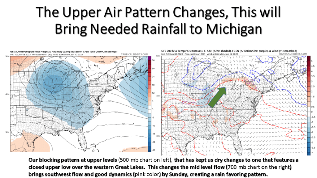 It’s been unusually dry is Lower Michigan since early May, this is expected to change by Sunday.