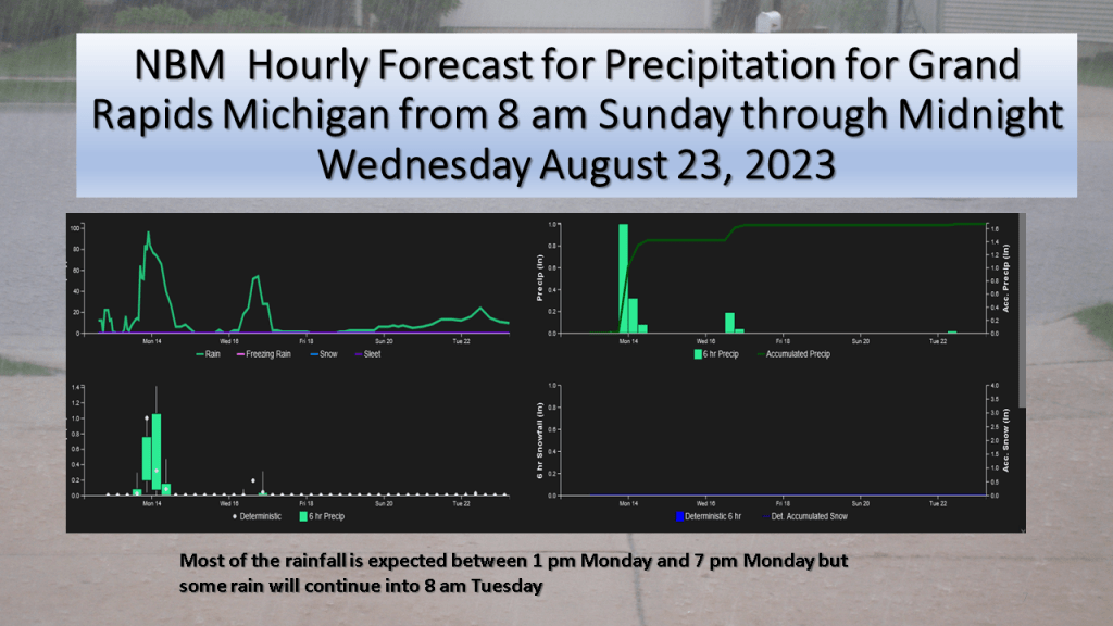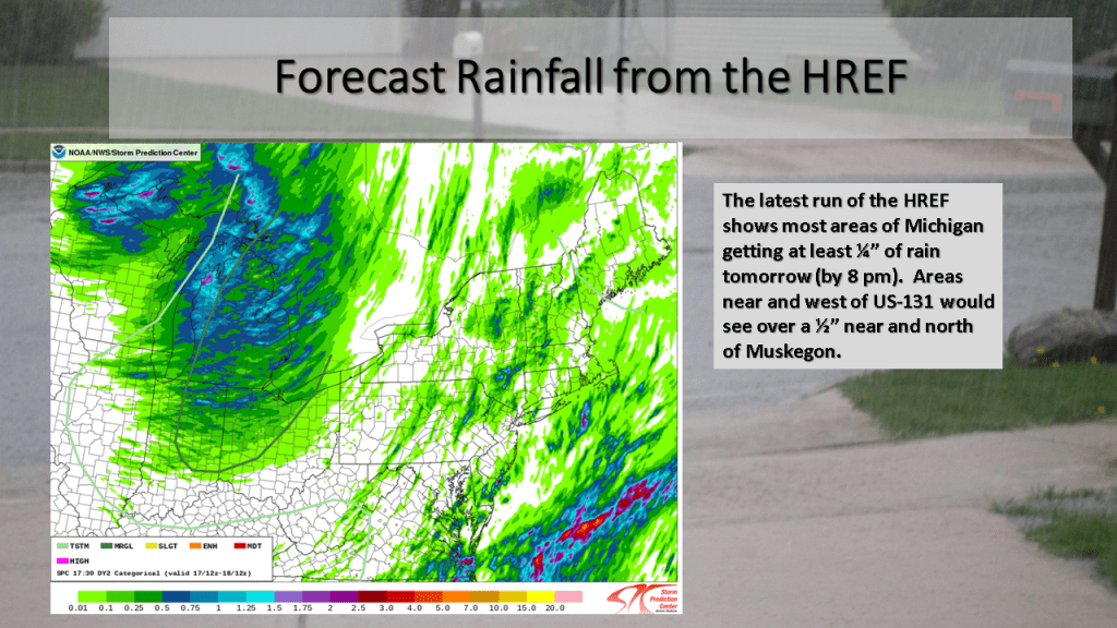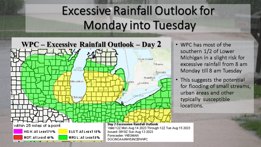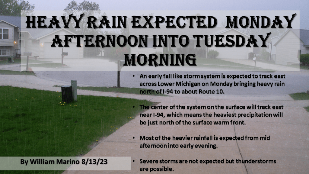 Heavy Rain is expected over most of the southern half of Lower Michigan between 2 pm Monday and 8 am Tuesday morning.