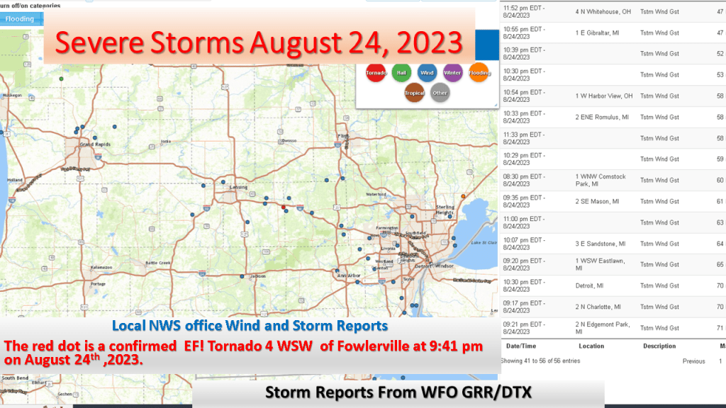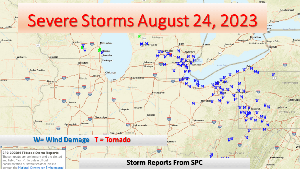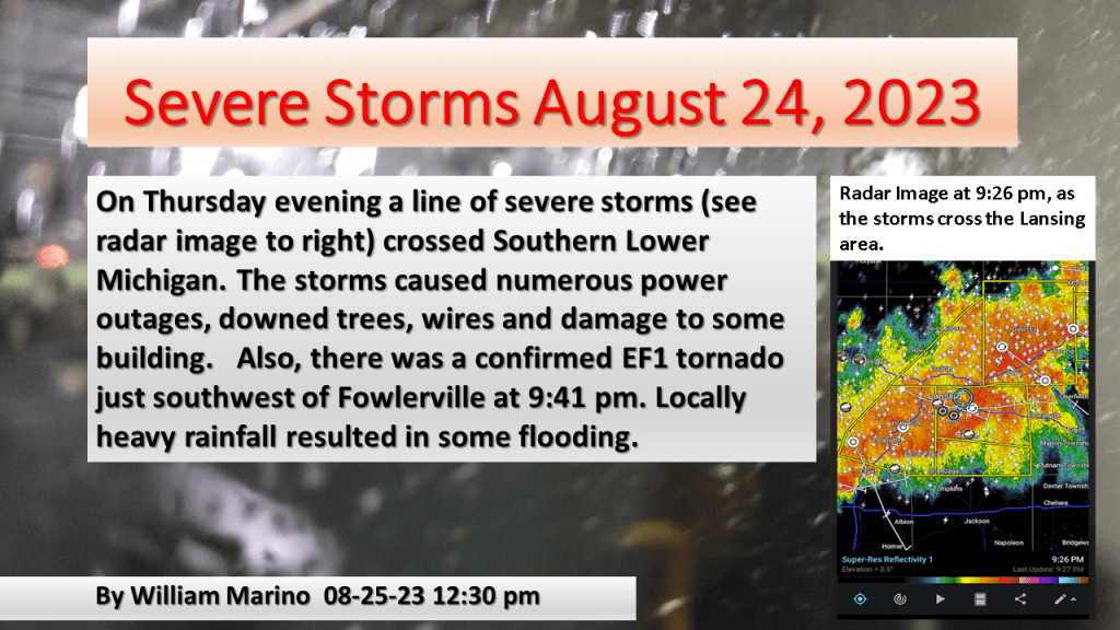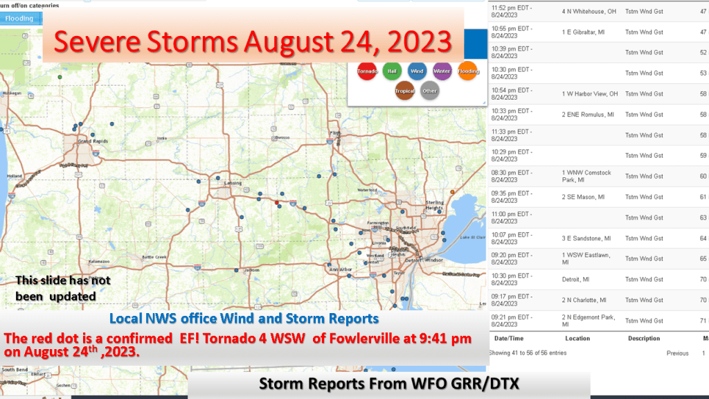 I updated my story about the severe storms since the NWS has now reported 8 tornadoes in Michigan on the 24th of August. The strongest was an EF-2 near Webbrvillle