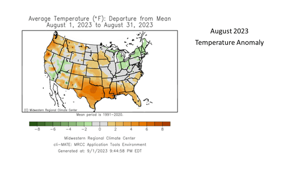 Here is a quick look at August 2023 National and Local Weather Anomalies. I will provide more details after the 10th of September when NCEI updated their charts.