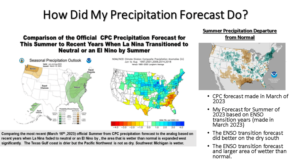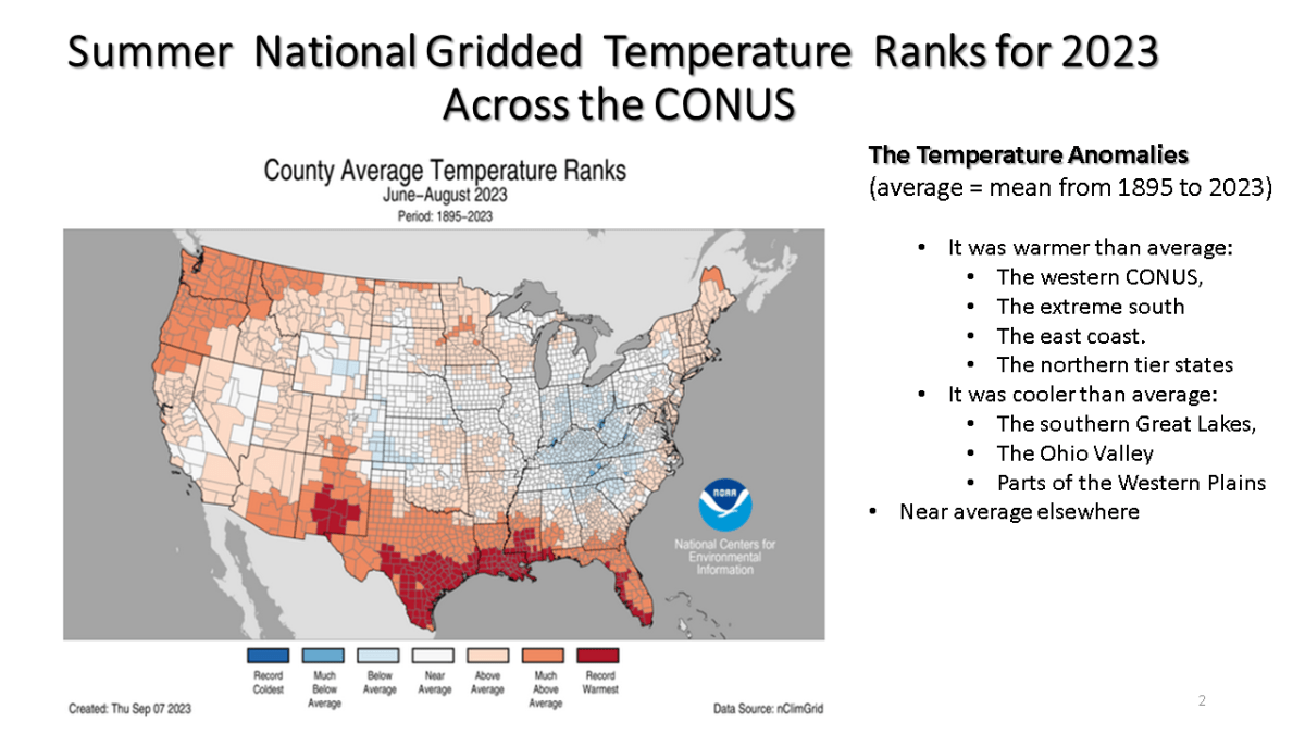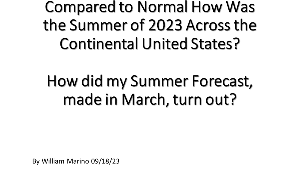 How did the Summer of 2023 turn out weather wise across the CONUS (continental United States)? How did the summer forecast I posted in March turn out (very good for the temperature, not so great for the precipitation)