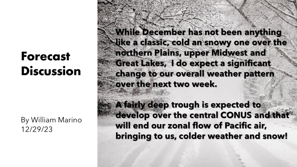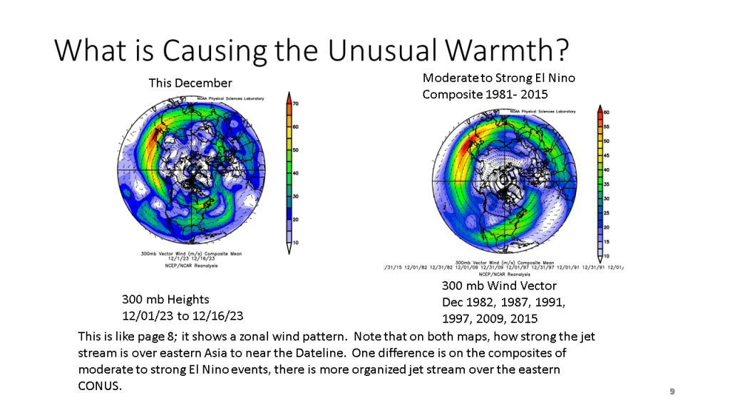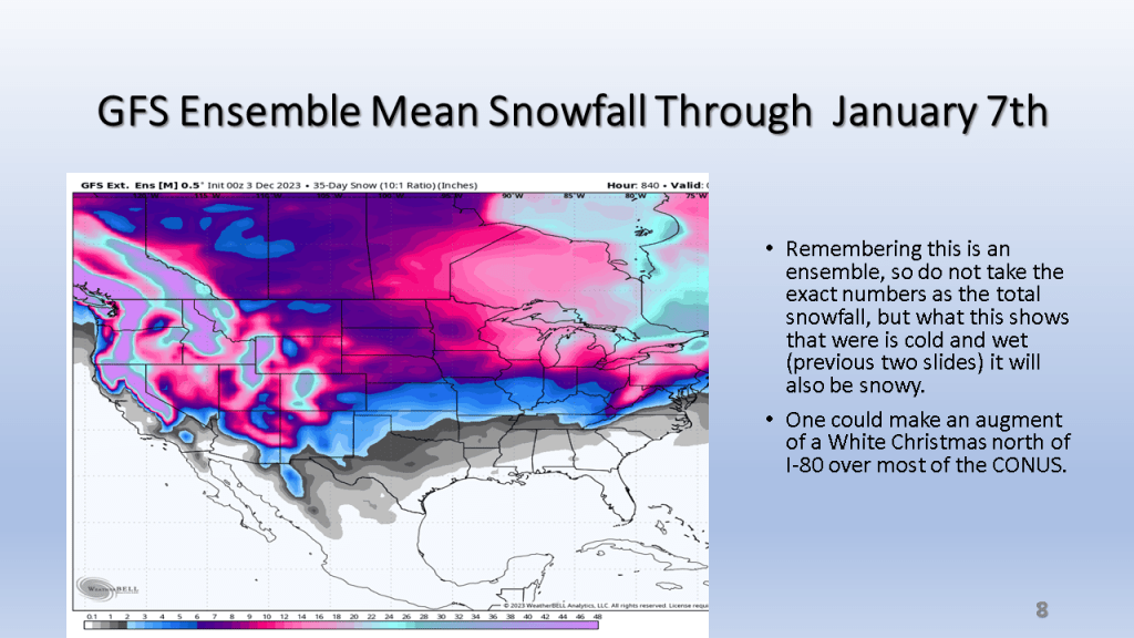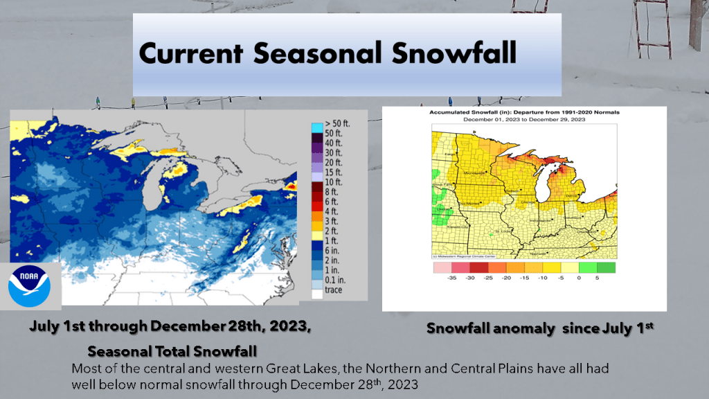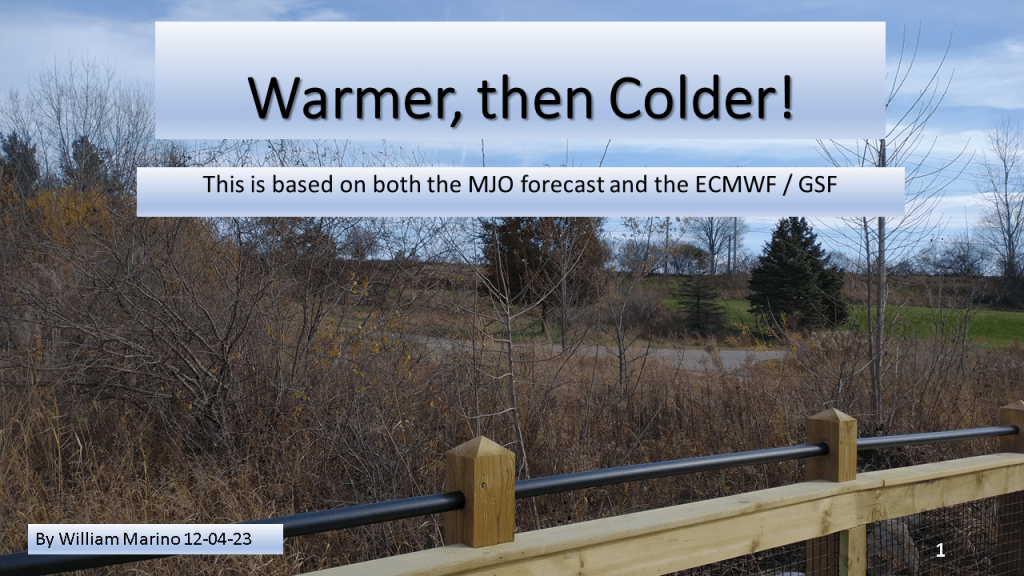 I am thinking snowfall will generally be below normal over Michigan, however sections of the East Coast, from North Carolina to Maine could have well above normal snowfall since El Nino’s favor Nor-Easters (Coastal Storms). When we get into a cooler pattern in January, I’d expect to see some heavy snow events along the east coast. See slide 48 for details.