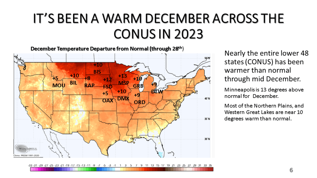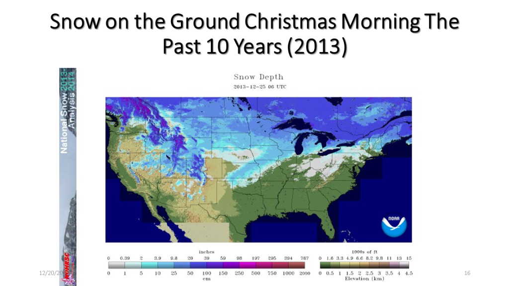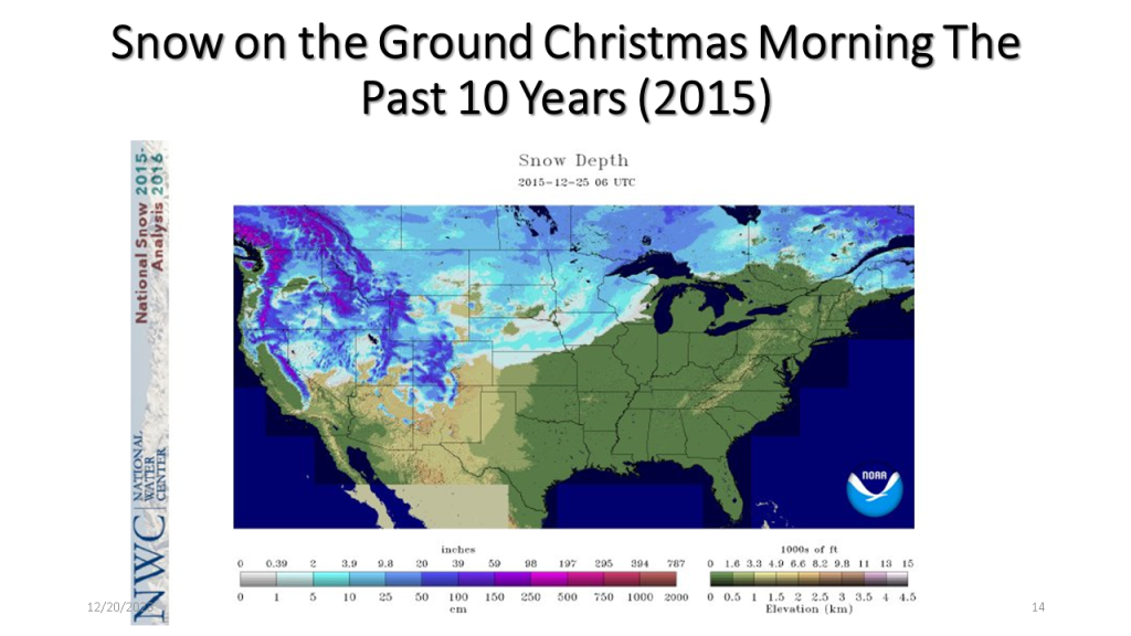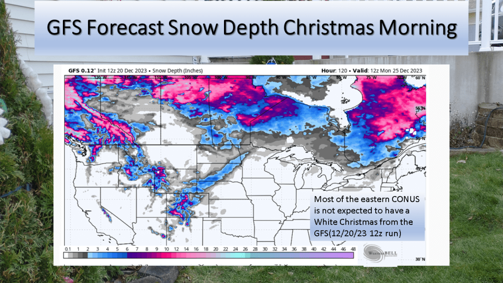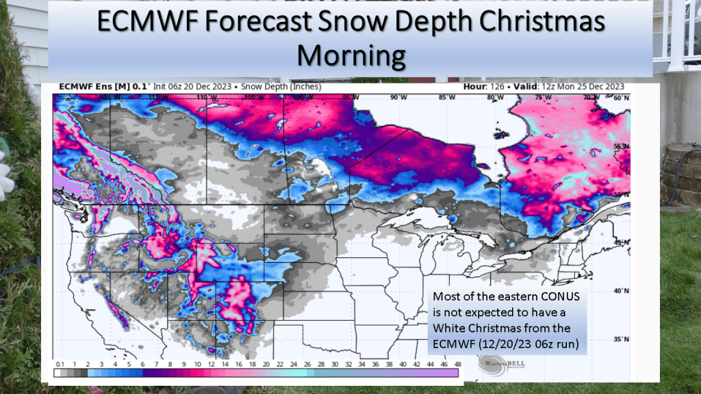 The short story is if you live in the central or eastern CONUS it is very unlikely you’ll have snow on the ground Christmas morning.