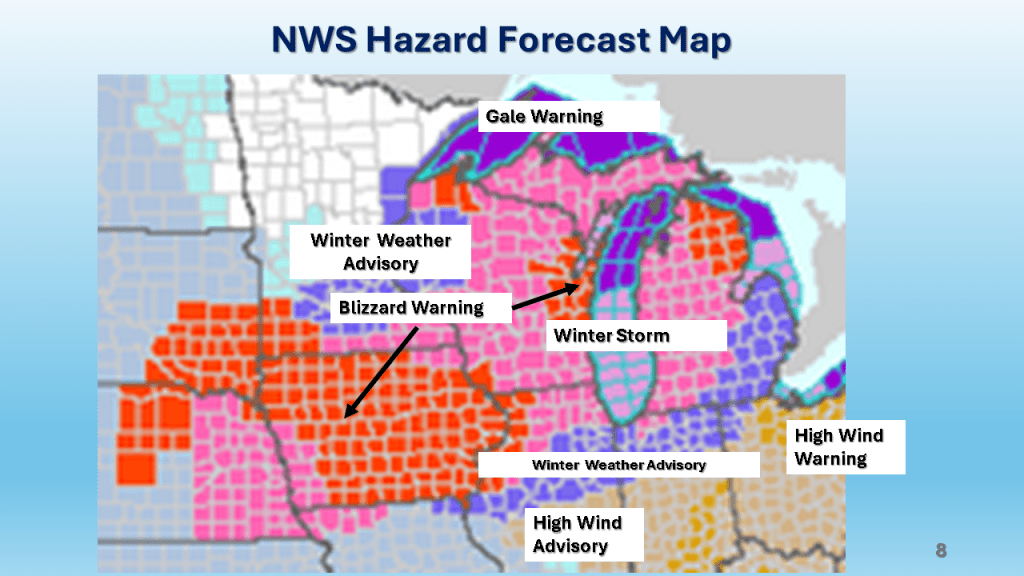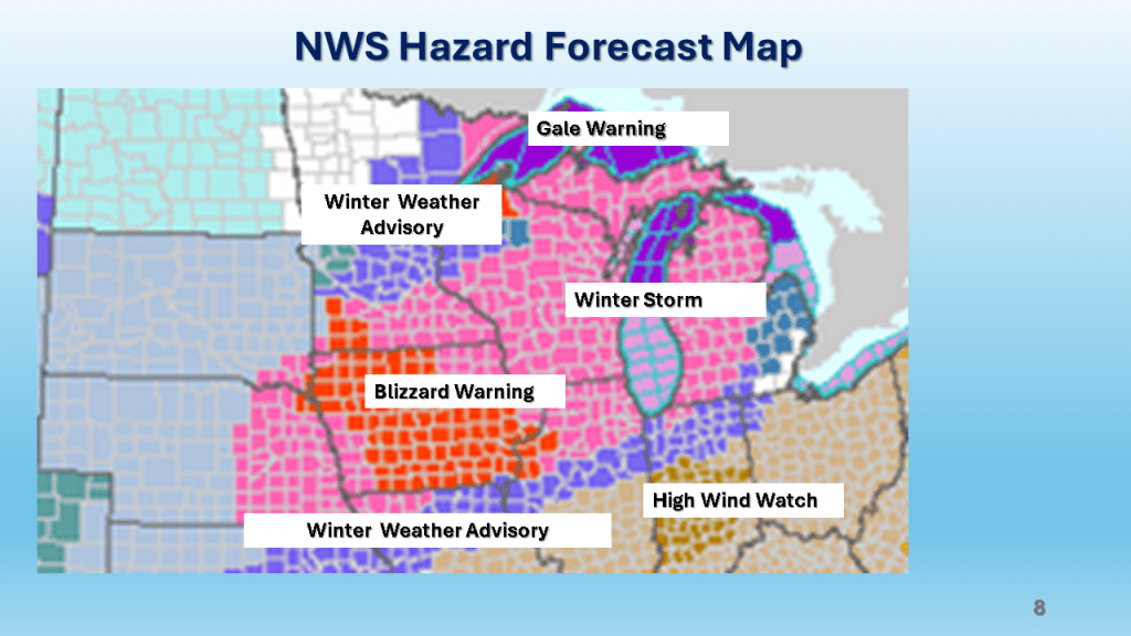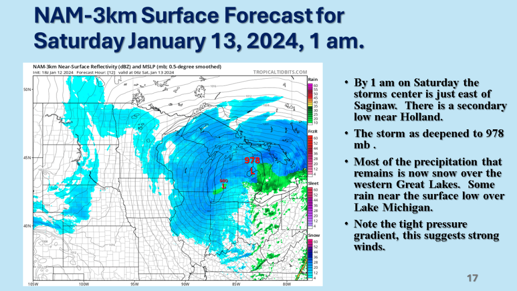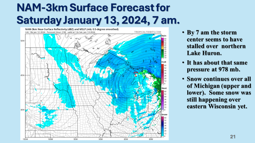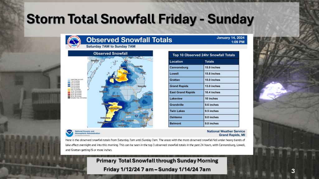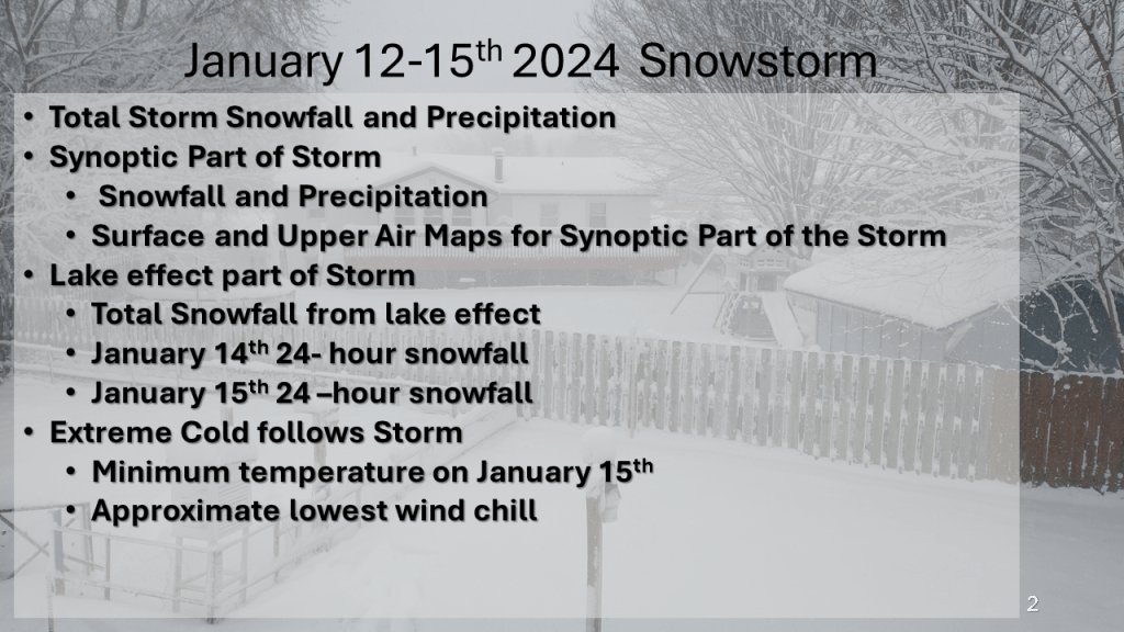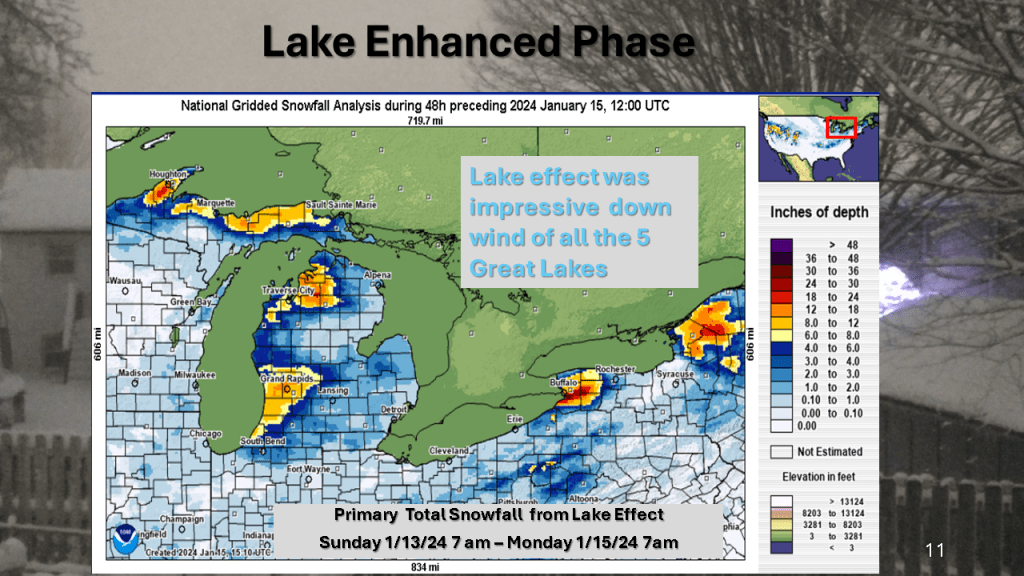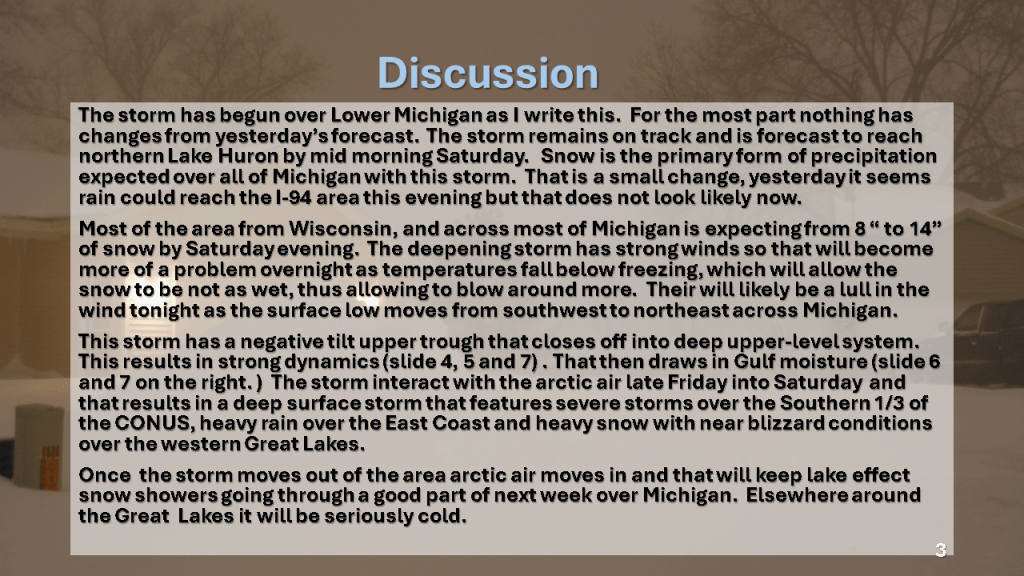 A rapidly deepening storm tracked Texas on Thursday afternoon to the northern Great Lakes by Saturday morning. The storm brought 1 to 2 feet of snow from Nebraska, across Iowa, Wisconsin then into Michigan. Strong winds accompanied the storm then the coldest air in several years followed the storm with dangerously cold wind chills over most of the Northern and Central Midwest. That cold air caused heavy lake effect snow in Michigan, near Buffalo New York and over the Tug Hill Plateau in the Adirondack Mountains, down wind of Lake Ontario.