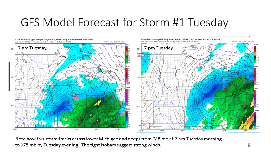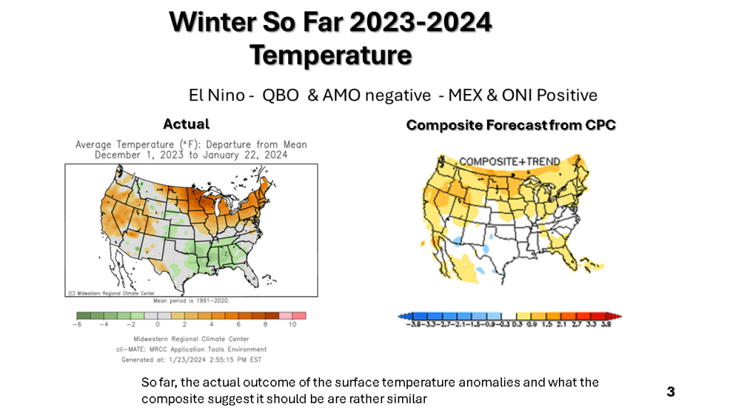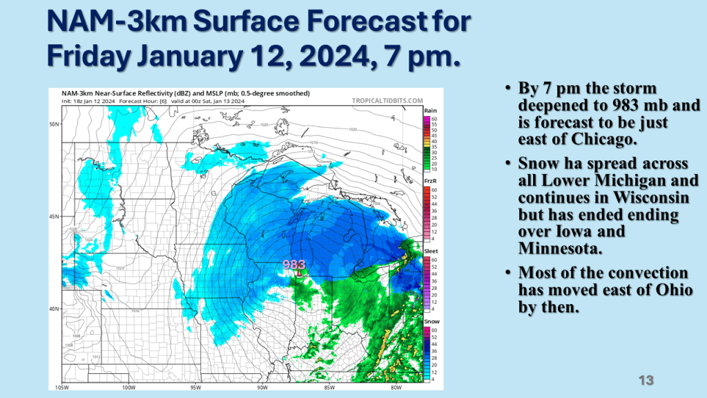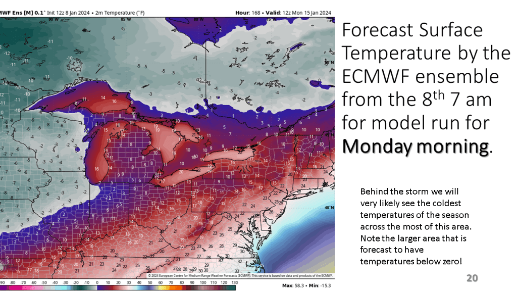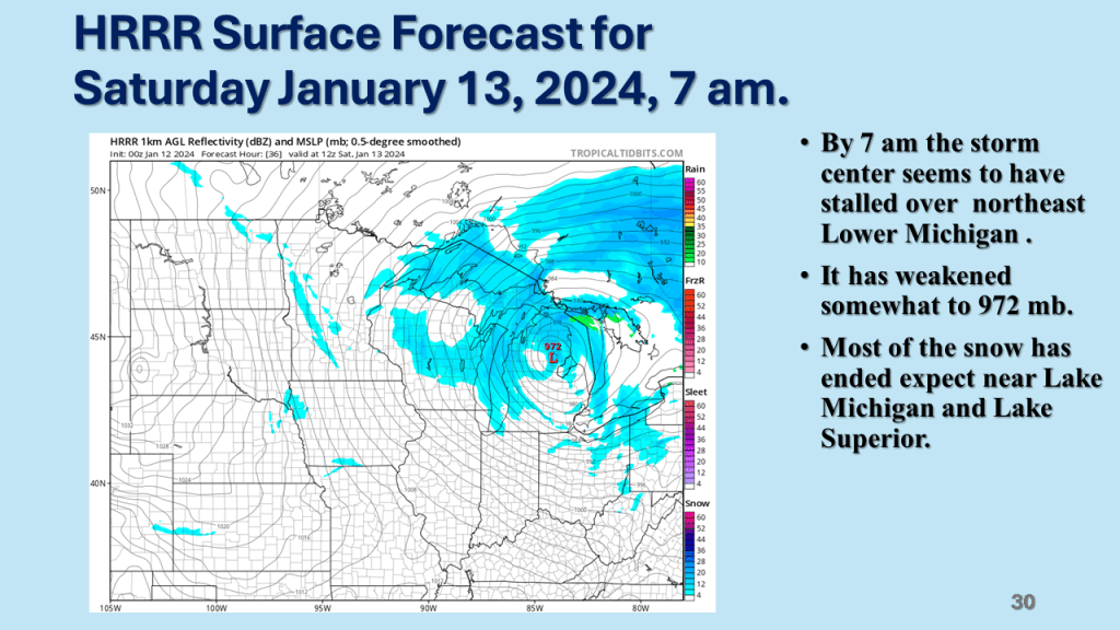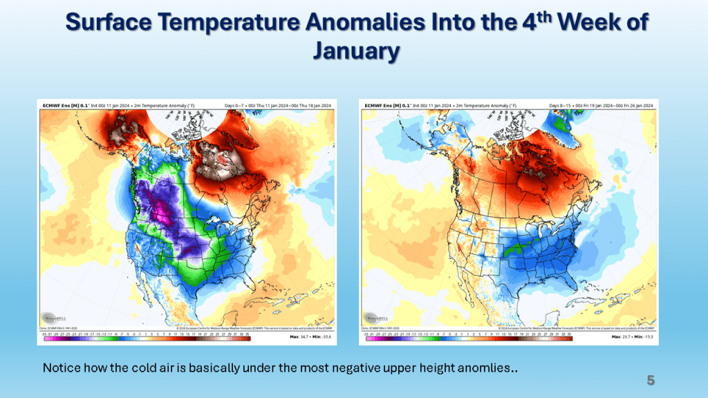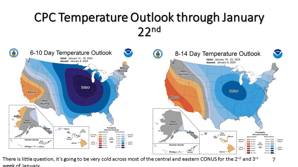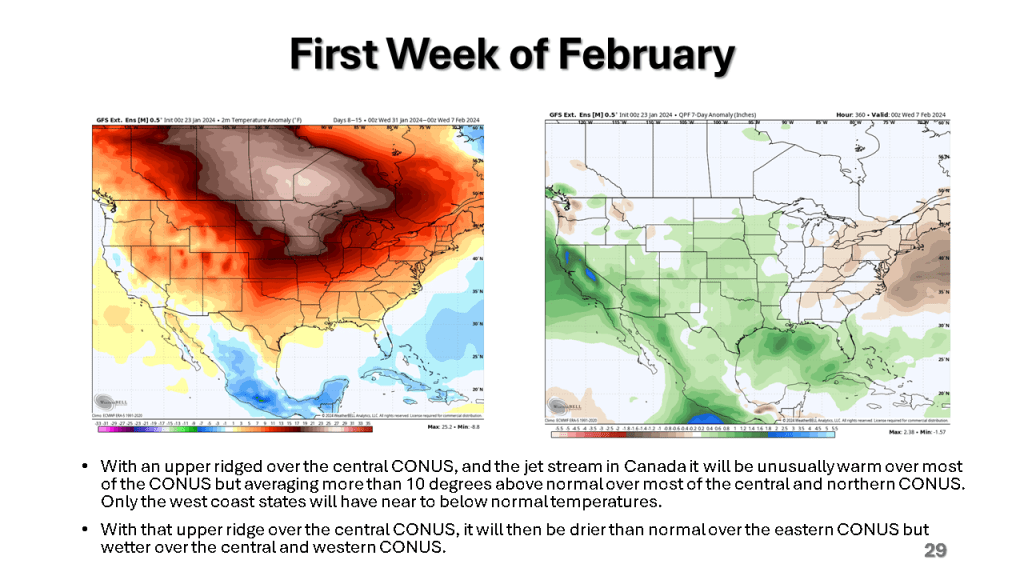 In Conclusion, the storms we will see over the central and eastern Untied States between now and Wednesday are the forerunners of a major change in the weather pattern over the CONUS. That past month or so was mostly warmer than normal over nearly all of the CONUS, with just the southeast sections near to below normal. From the second week through the third week in January we will see much colder weather from the west coast to the east coast and the wet pattern will expand into the central United States. Snow will likely be on the ground over most locations north of Indianapolis by the end of next week.