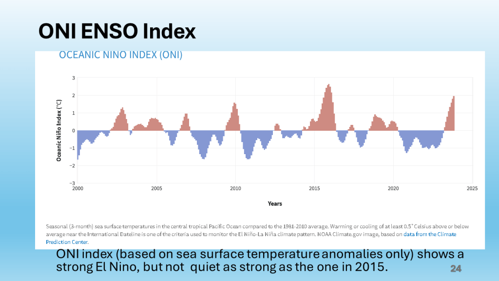 A strong El Nino Continued (based on ONI data from CPC)