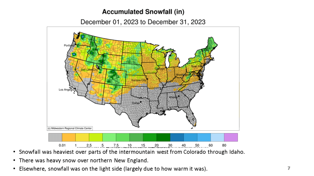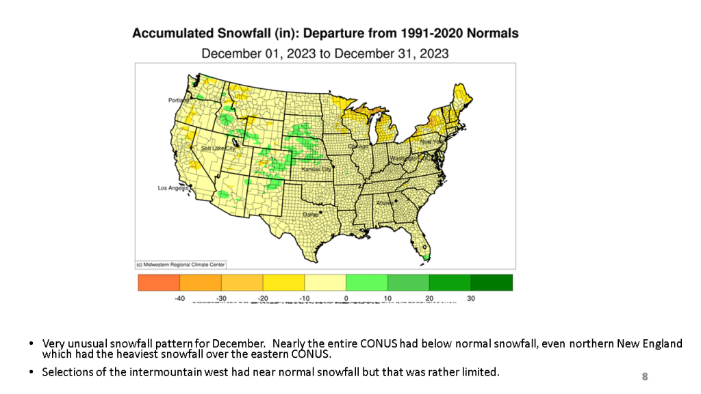 Snowfall was well below normal across the CONUS