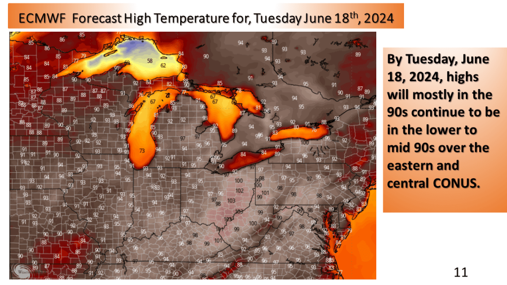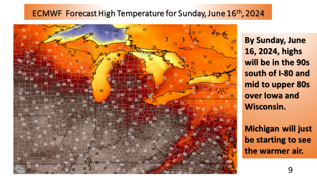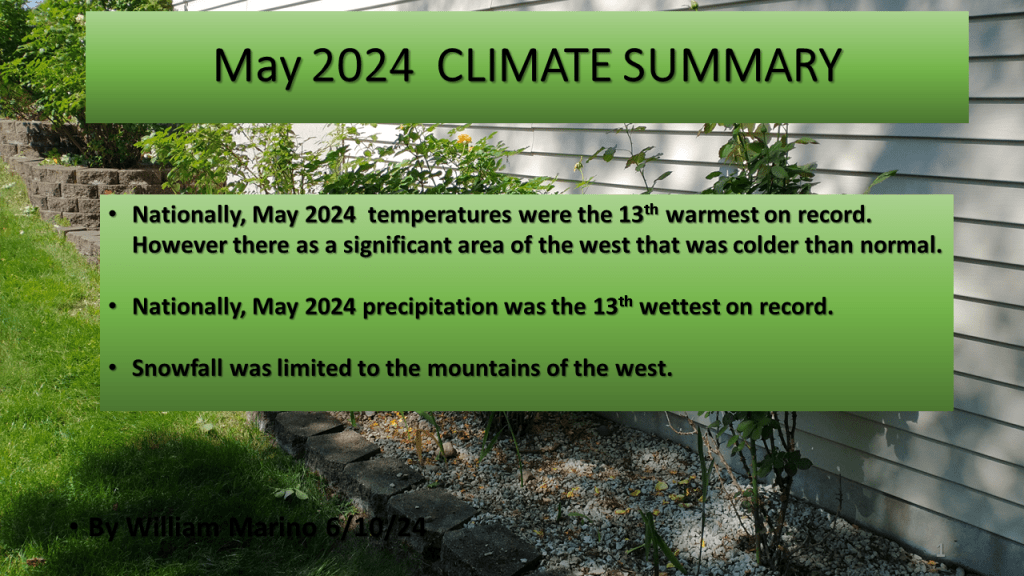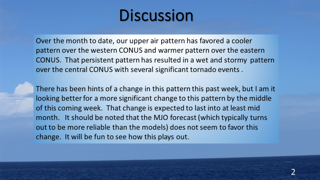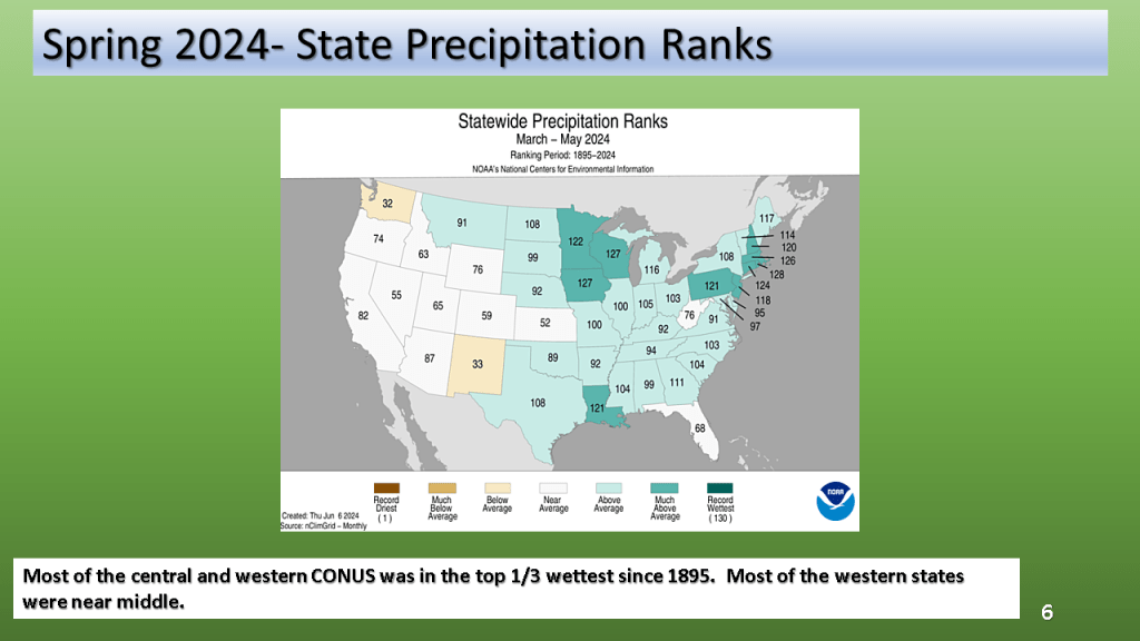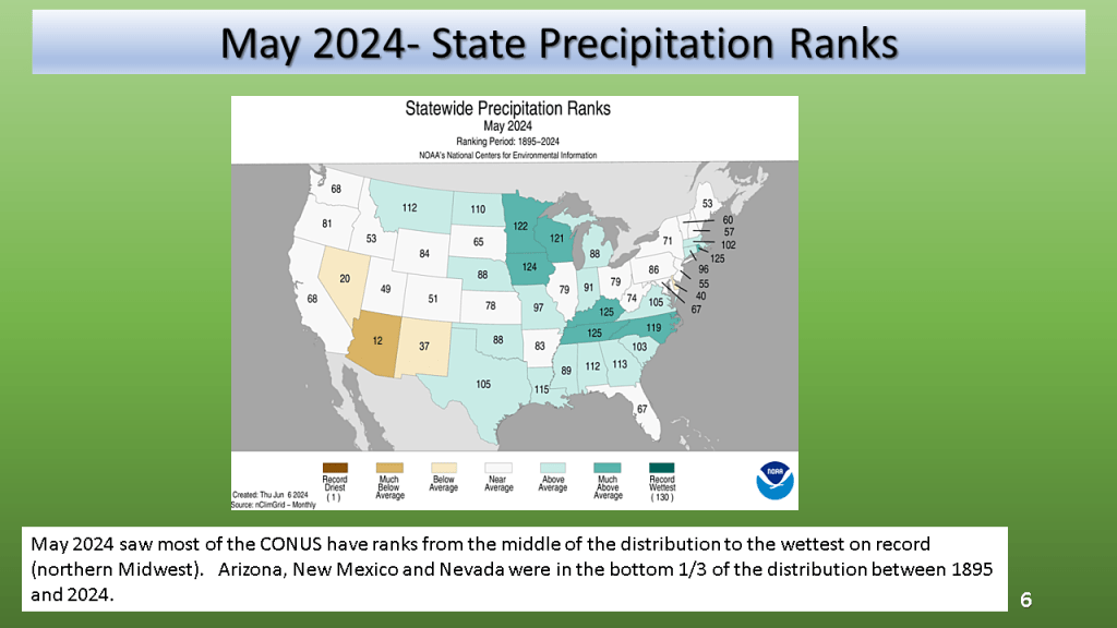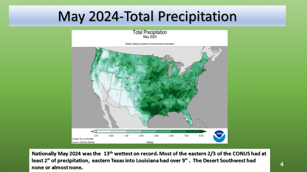 This would suggest cooler than normal over the eastern CONUS and warmer than normal over the western CONUS. The wet weather over the central CONUS may last into the first week of June but most of the rest of June is expected to feature near to below normal precipitation.