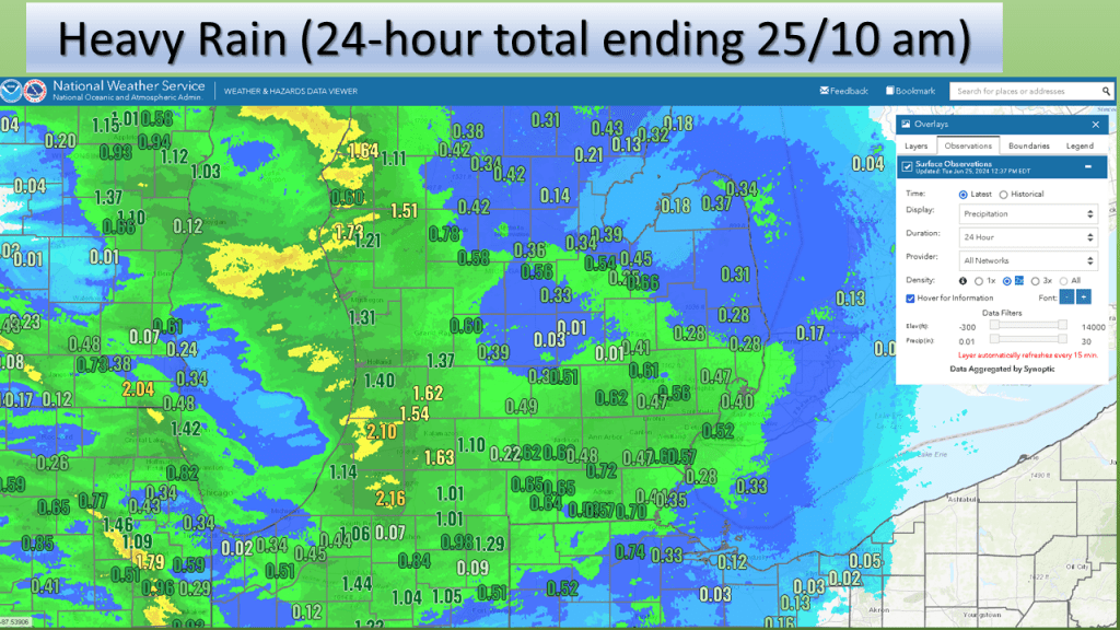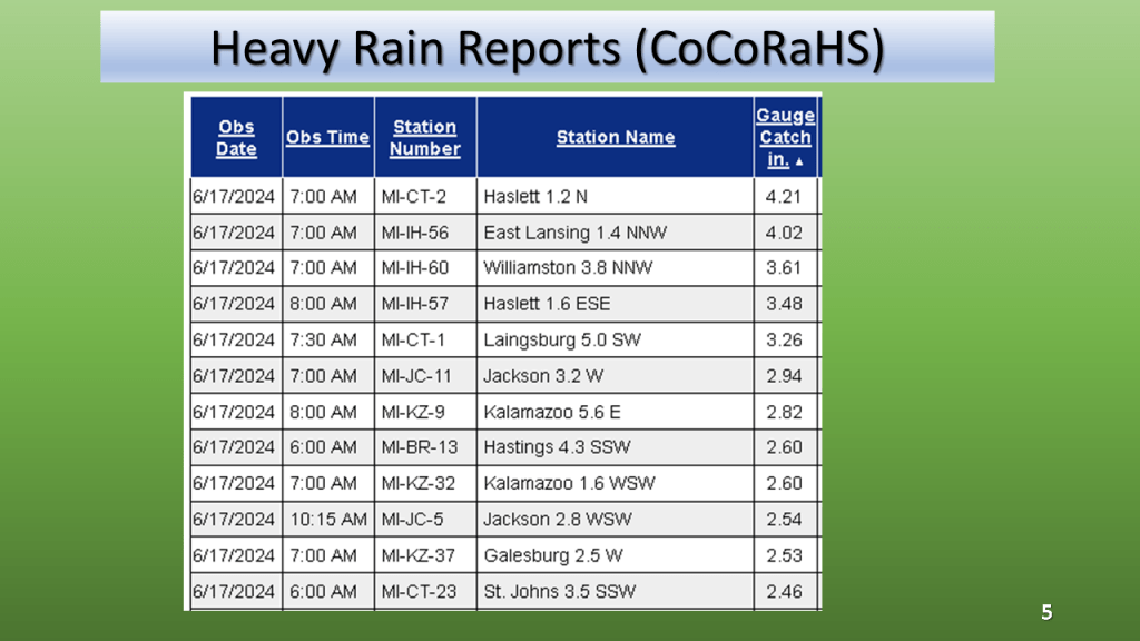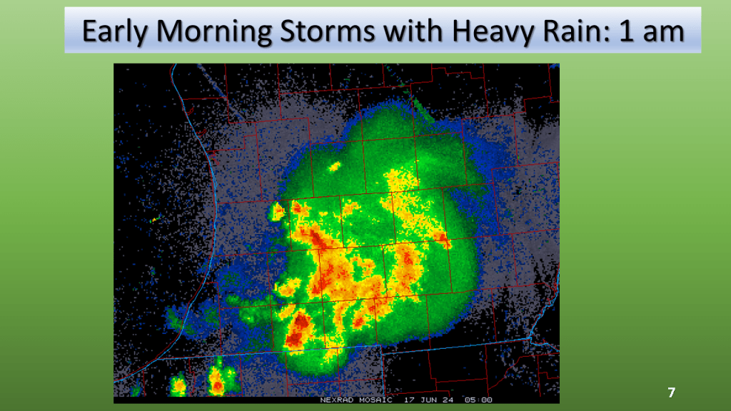 Winds to 76 mph, 1″ hail and rainfall to near 5″ within 12 hours