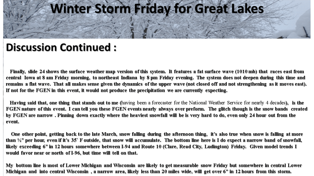 The following slides will show you the details of this event that is expected to bring up to 10″ of snow in about 12 hours to some locations in western Great Lakes. It will likely be the heaviest snowfall over most of the area since mid February.