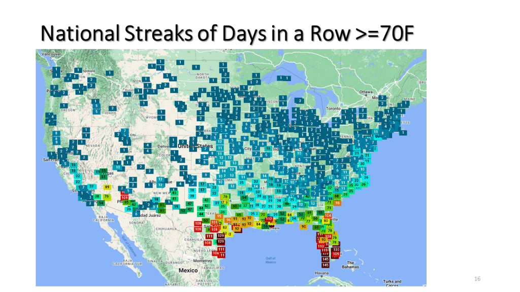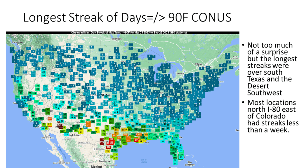 In our string of nationally much warmer than normal seasons, the fall of 2023 was 124th out of 129 falls for warmer than normal. This puts this fall warmer than 96% of all falls since 1895! No area of the CONUS had a below normal temperatures (bottom 1/3 coldest) this fall.