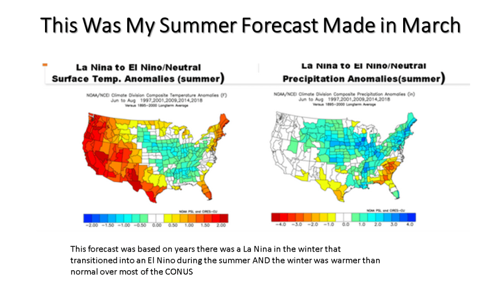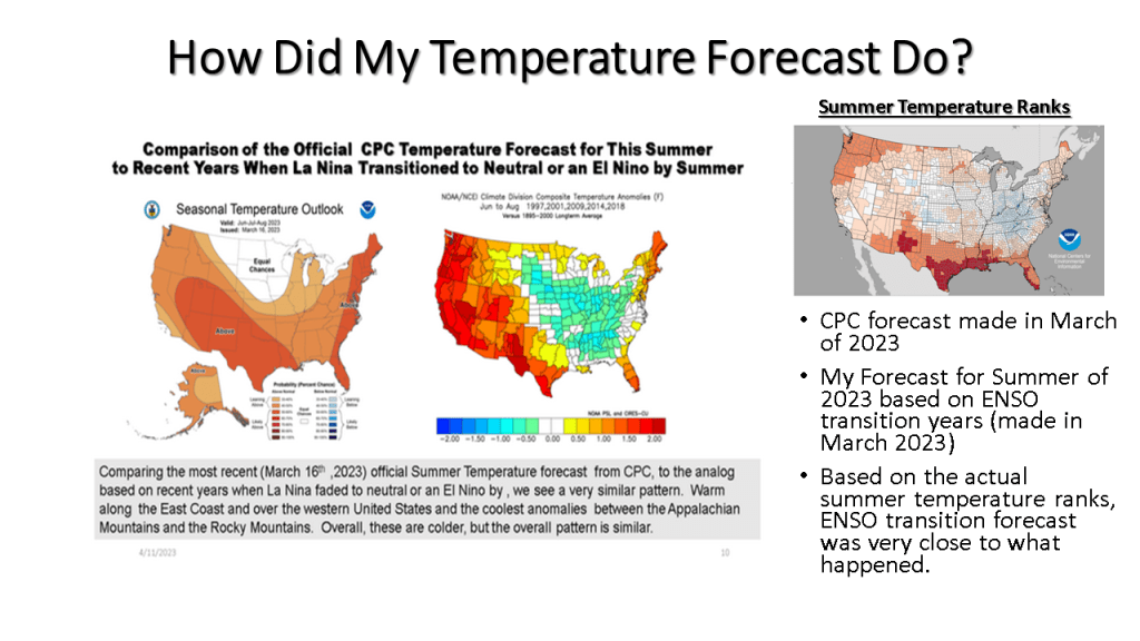 I have added 2 slides to this presentation ( 8 and 9). These two slides show that what one uses for the “normal”, greatly impacts what the departure from normal looks like. I used 1991 to 2020, the official NWS normal period for the image on the top left, then 1895 to 2000 for the image on the top right, not the area of below normal is significantly less. That is because the period 1991 to 2020 was warmer than the 1895 to 2000 period. On the bottom left the mean is 1895 to 2020, that has no below normal areas. This seems questionable to me since the ranked normal’s on the next slide look a lot like the 1895 to 2000 on slide 8. I added this because I was getting some questions on this matter. I hope this helps.