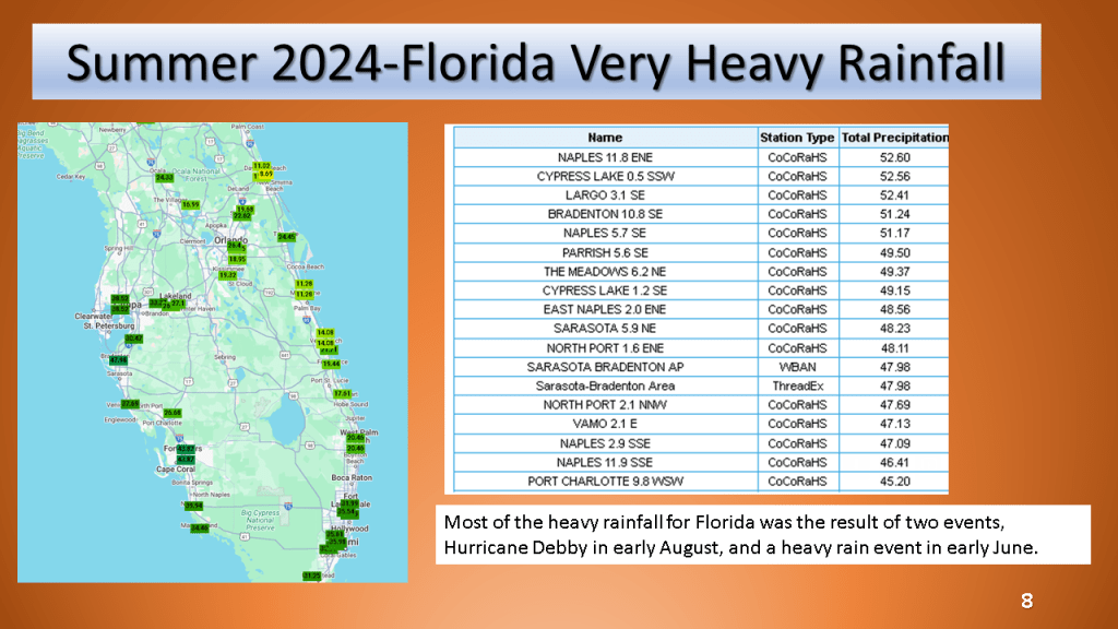 Updated with State Maximum and Minimum Temperature Ranks and details on Florida and Michigan heavy rainfall amounts