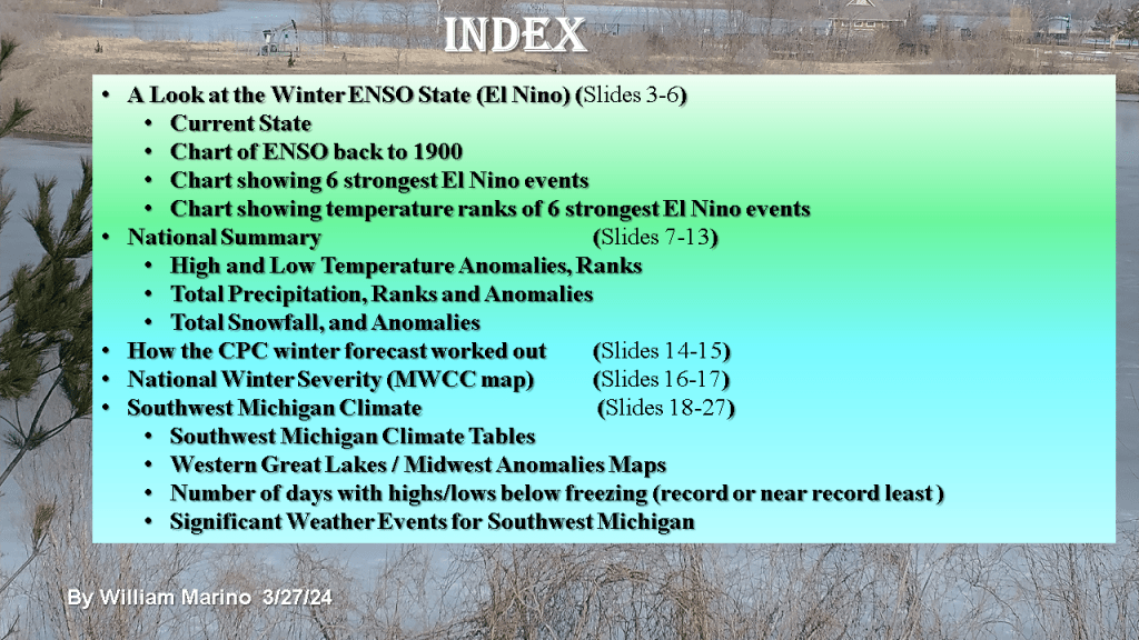 This version of the winter forecast has the seasonal forecast as well as monthly forecasts from December through February.