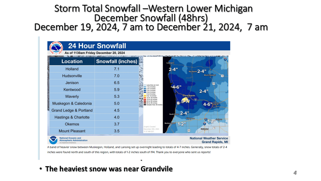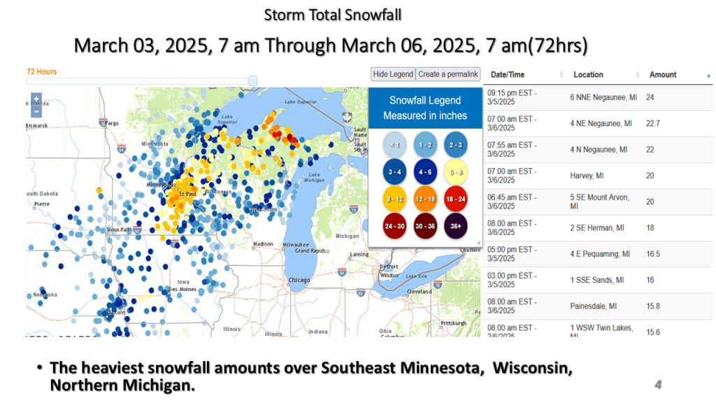Spring Storm brings heavy snow, freezing rain and severe storms on March 30, 2025. Here is the link to the NWS Grand Rapids Storm Summary Here is the link to the NWS – Detroit Storm Summary Link to Northern Indiana Office Storm Summary
