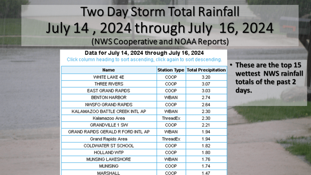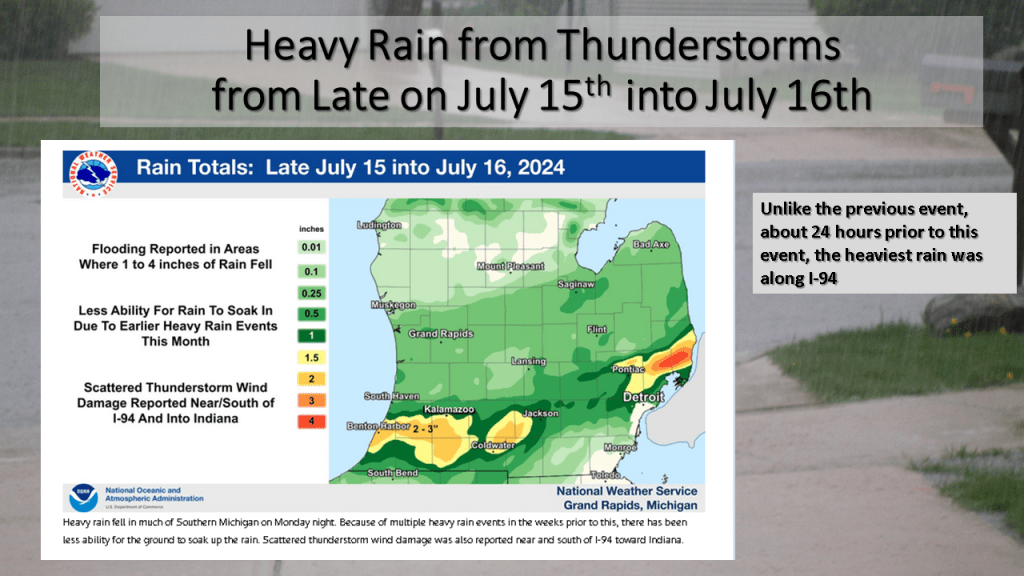 Thunderstorms with heavy rain two nights in a row brought 2″ to 3″ of rain over a good share of southern Half of Lower Michigan.